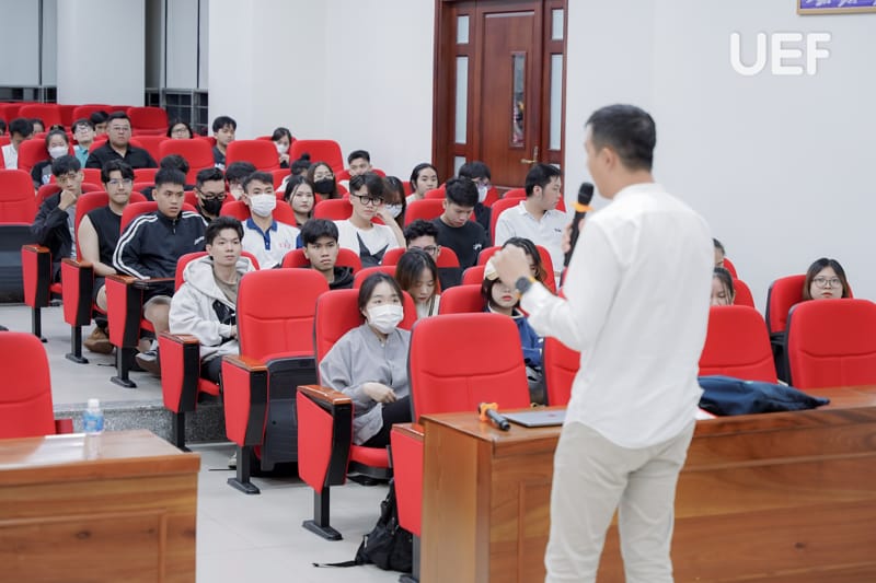 Tại các buổi báo cáo, diễn giả chia sẻ với sinh viên có nhiều đại diện đến từ doanh nghiệp