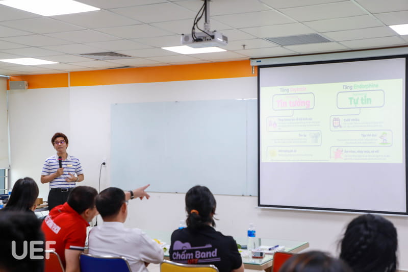 Nhằm giúp đội ngũ giảng viên, nhân viên thực hiện công tác hỗ trợ sinh viên có thể quản lý tốt cảm xúc của bản thân, nâng cao kỹ năng chuyên môn, kỹ năng giao tiếp, tương tác với sinh viên, xử lý các tình huống cấp bách trong môi trường đại học cũng như mở rộng kết nối với các bên liên quan, vào sáng ngày 4/3, Trung tâm Tham vấn tâm lý và Hỗ trợ pháp luật UEF đã tổ chức chương trình tập huấn “Quản lý cảm xúc và giao tiếp hiệu quả đối với sinh viên" cho các cán bộ - giảng viên - nhân viên Nhà trường.