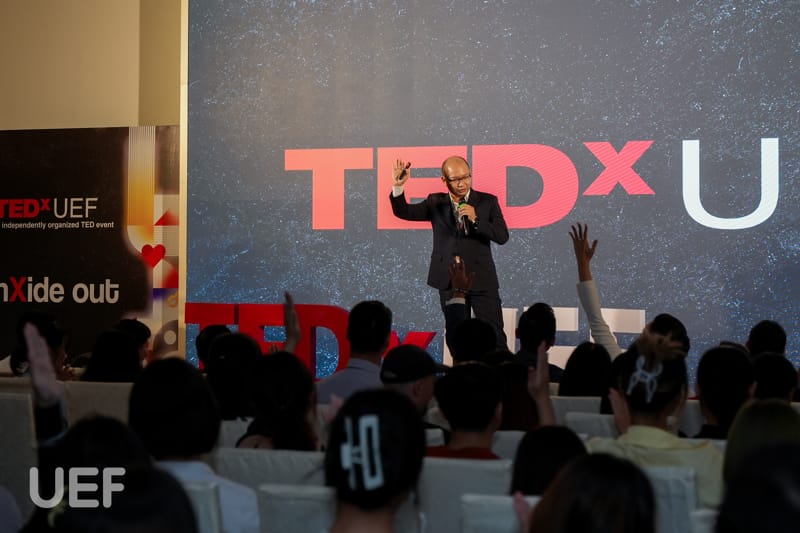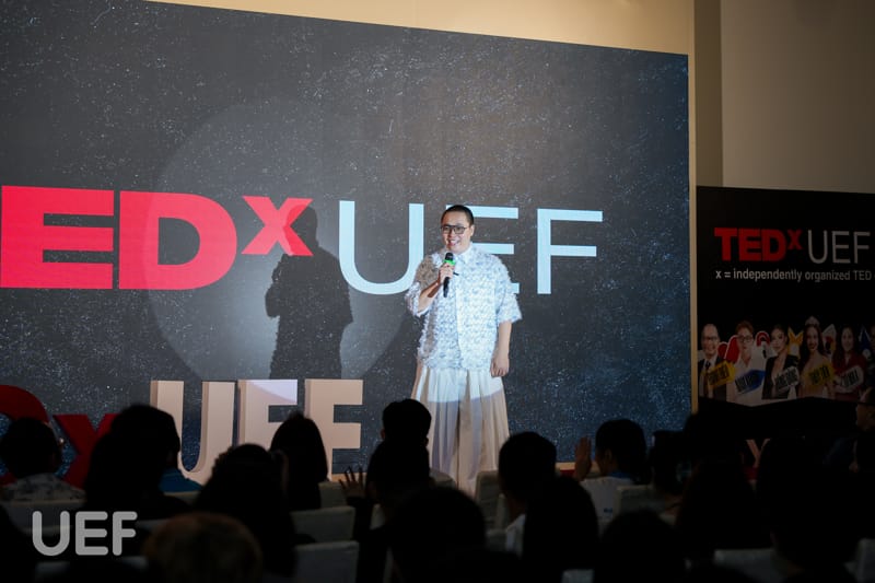 Phát biểu mở đầu chương trình, TS. Đỗ Hữu Nguyên Lộc đã chia sẻ về nguồn gốc của TED và cơ duyên thực hiện TEDx UEF, đặc biệt nhấn mạnh ekip tổ chức sự kiện là sinh viên của Nhà UEF. Những thông tin nổi bật về UEF cũng được đề cập đến các khách mời trong chương trình.