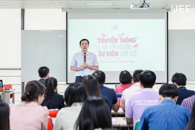 Nhằm nâng cao năng lực tổ chức sự kiện và phát huy hiệu quả truyền thông nội bộ trong môi trường giáo dục hiện đại, sáng ngày 17/1, UEF đã tổ chức buổi tập huấn “Tổ chức sự kiện và Truyền thông nội bộ” - Buổi 1 dành cho thầy cô cán bộ, giảng viên, nhân viên toàn trường. Chương trình mang đến những góc nhìn thực tiễn, cập nhật xu hướng và truyền cảm hứng trong công tác xây dựng văn hóa tổ chức.