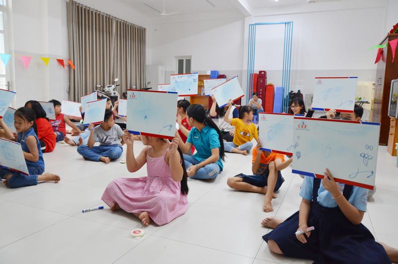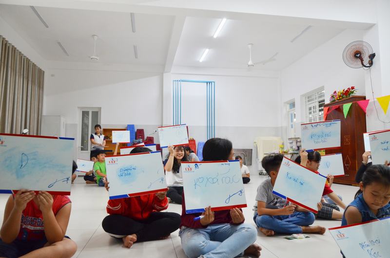 Bên cạnh nội dung chính là chiếu phim, các bạn sinh viên UEF cũng chuyển tải những thông điệp bảo vệ môi trường vào các hoạt động như: trò chơi phân loại rác thải, tìm hiểu về hậu quả của vấn đề ô nhiễm môi trường. Việc lồng ghép các thông điệp vào những hoạt động vui chơi góp phần tăng tính tương tác của trẻ, qua đó giúp trẻ có thể tiếp thu và ghi nhớ tốt hơn.