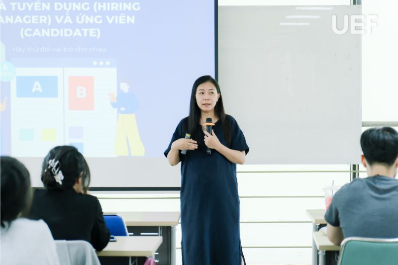Đồng thời, với vai trò là nhà tuyển dụng dày dặn kinh nghiệm, diễn giả đã mang đến nhiều bí quyết hữu ích về quy trình phỏng vấn tại doanh nghiệp, những điều cần chuẩn bị cũng như các thiếu sót làm ứng viên mất điểm UEFers cần lưu ý.