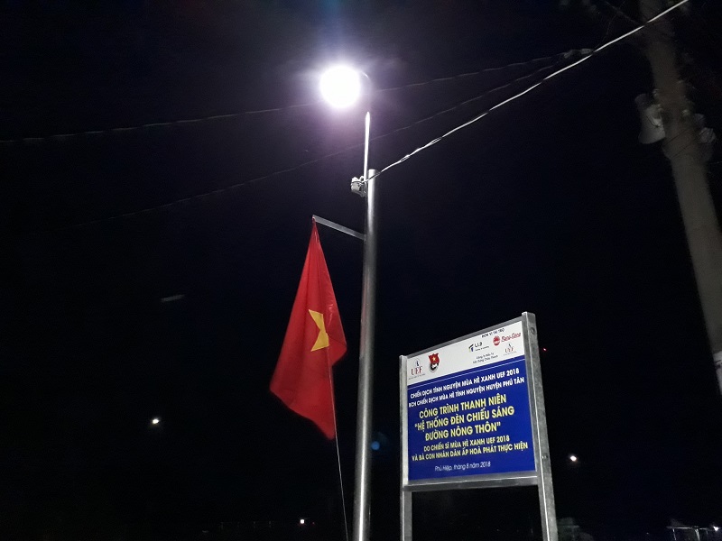 Sau khoảng thời gian “nhập gia” tại mặt trận huyện Phú Tân, tỉnh An Giang các chiến sỹ áo xanh UEF đã bắt tay thực hiện các công trình ý nghĩa vì cộng đồng. Trong đó, công trình “Thắp sáng nông thôn” đã chính thức hoàn thành, mang ánh điện chiếu sáng đường xá tại khu vực, đem lại niềm vui lớn cho bà con địa phương.
