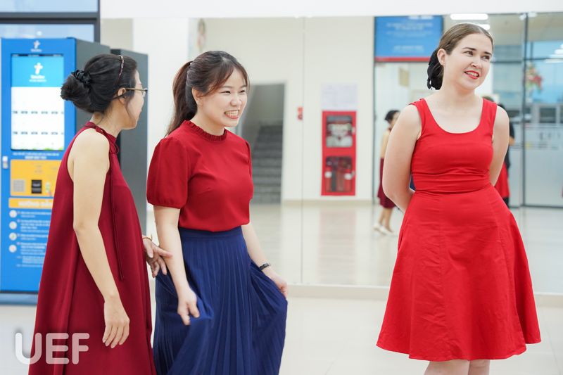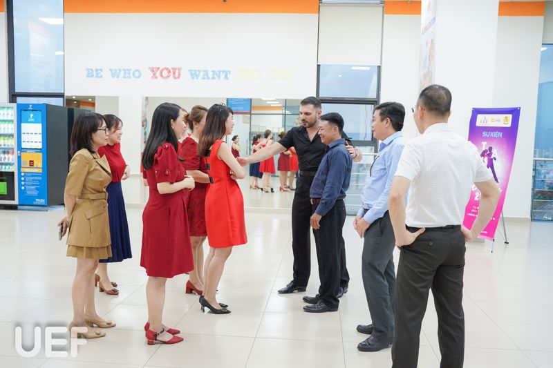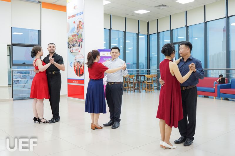 Anh Đinh Gia Viễn - Văn phòng trường UEF chia sẻ: “Mình nhận thấy hoạt động này thực sự thú vị, lớp học được giảng dạy bởi một vũ công quốc tế chuyên nghiệp. Ngoài ra hoạt động này cũng giúp cho mình và các thầy cô khác trong trường rèn luyện sức khỏe, biết thêm nhiều kiến thức mới về điệu khiêu vũ Tango”.