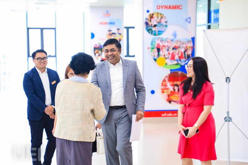 Mở đầu chương trình, TS. Đỗ Hữu Nguyên Lộc - Phó Hiệu trưởng Nhà trường đã gửi lời chào nồng nhiệt nhất đến vị Tổng lãnh sự Ấn Độ và chia sẻ: “Tôi rất vui và vinh dự khi một lần nữa được đón tiếp ông Madan Mohan Sethi sau buổi gặp gỡ đầu tiên vào năm 2020 tại UEF. Có thể thấy theo thời gian, mối quan hệ Việt - Ấn ngày càng phát triển và vững mạnh trên hầu hết các phương diện. Mong rằng trong tương lai, chúng ta sẽ đạt được những thỏa thuận trong việc liên kết giữa UEF và các trường đại học tại Ấn Độ.”