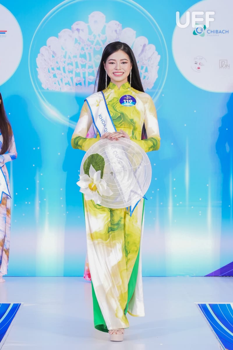 Ở phần đồng diễn mở màn, 40 cô gái đều thể hiện nét đẹp năng động, trẻ trung và khả năng làm chủ sân khấu. Với đồng phục Khoa/Viện, mỗi thí sinh mang cá tính riêng, đại diện tinh thần đặc trưng của từng đơn vị. Trong trang phục áo dài đến từ bộ sưu tập của Nhà thiết kế Đạt Huỳnh - Thương hiệu Bin Studio, sự đằm thắm, dịu dàng của thí sinh được toát lên giúp các bạn càng tỏa sáng và thu hút.