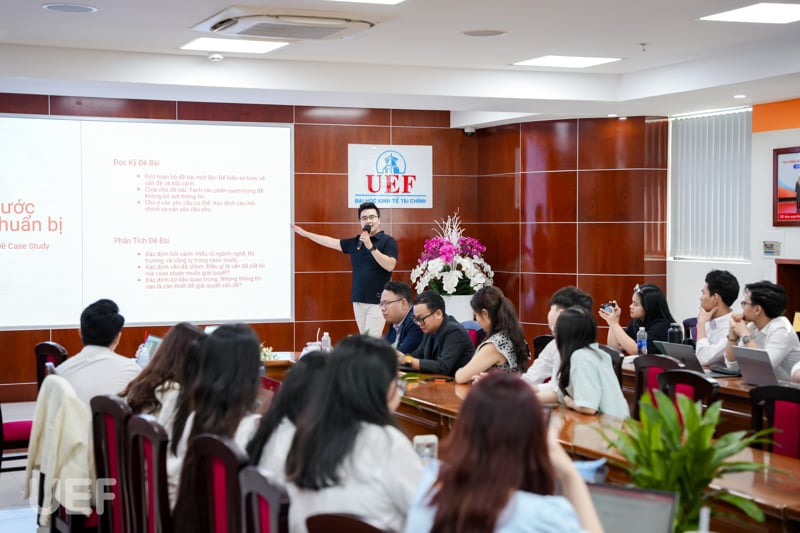 Tiếp nối phần chia sẻ về Omnichannel, các bạn thí sinh đã được lắng nghe chia sẻ của ông Trần Kim Duy Lân về các bí quyết giải case study hiệu quả cũng như làm sao để rèn luyện kỹ năng thuyết phục và gây ấn tượng mạnh mẽ với ban giám khảo để tạo ra “key moment” cho riêng mình. Dựa trên case study của thương hiệu Coca-Cola, các phương pháp đọc hiểu, bóc tách case study đã được truyền tải chi tiết đến các thí sinh. Độ nhạy bén và khả năng thích ứng của UEFers tài năng cũng đã được thử thách qua case study thú vị này.