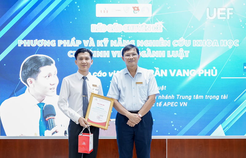 Sáng ngày 8/10, Khoa Luật đã tổ chức thành công buổi báo cáo chuyên đề “Phương pháp và kỹ năng nghiên cứu khoa học cho sinh viên ngành Luật”. Nhận được nhiều chia sẻ hữu ích từ báo cáo viên, UEFers có thêm kiến thức, kỹ năng để tự tin chinh phục hành trình nghiên cứu khoa học trong năm học mới.