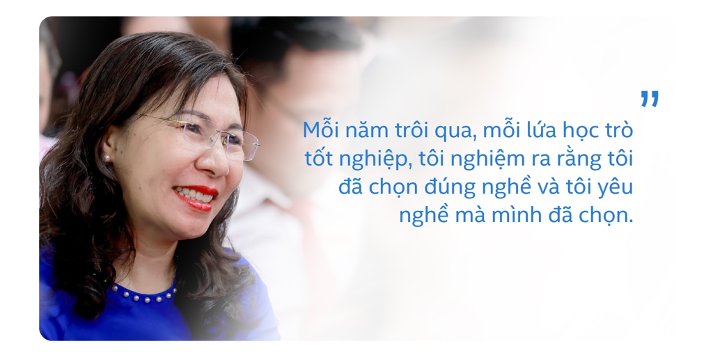 “Thời gian trôi qua nhanh, thấm thoát nay đã vừa tròn 20 năm tôi đứng trên bục giảng. Tháng ngày được đồng hành với các em, cùng các em chinh phục bến bờ tri thức, cùng các em trưởng thành… làm cho tôi luôn cảm thấy hạnh phúc. Niềm vui và hạnh phúc thật sự vỡ òa mỗi khi tôi nghe các em thông báo tìm được việc làm tốt, đúng với chuyên ngành và ước mơ của các em. Có thể nghề giáo đôi lúc gặp khó khăn, nhưng những vất vả và hy sinh sẽ được mọi người thấu hiểu và trân trọng như chính bản chất cao quý vốn có của nghề giáo. Mỗi nhà giáo như một ngọn nến, cháy hết mình để thắp sáng đường đi cho học trò, đưa các em đến bến bờ tri thức”.