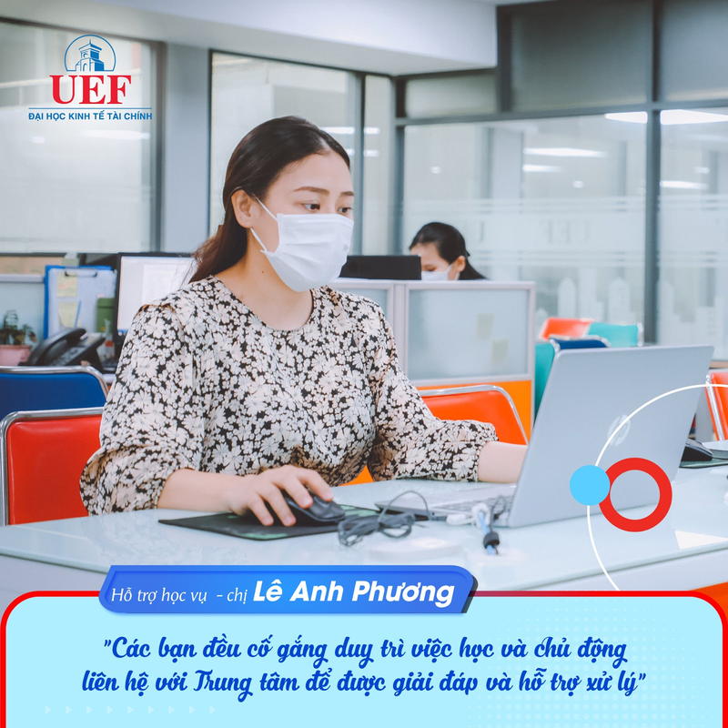 Khi học online, sinh viên không thể được hỗ trợ trực tiếp về vấn đề học vụ cũng như các hoạt động ngoại khóa. Để khắc phục điều này, thầy cô đã cố gắng làm việc hết mình để giúp các bạn giải đáp thắc mắc cũng như có những hoạt động ý nghĩa tại nhà. “Nhận được phản hồi của các bạn sinh viên, Trung tâm Hỗ trợ học vụ đều cố gắng xử lý nhanh chóng hoặc liên hệ với các đơn vị liên quan để kiểm tra, khắc phục sớm nhất có thể. Đối với các trường hợp sinh viên không theo kịp bài, ngoài việc gửi email trực tiếp nhờ thầy cô bộ môn, Trung tâm còn gọi điện thoại hướng dẫn cụ thể để các bạn mạnh dạn trao đổi với giáo viên, để thầy cô nắm bắt tình hình và hỗ trợ hướng dẫn bài ngay tại lớp. Ngoài ra, Trung tâm Hỗ trợ học vụ còn hướng dẫn UEFers đăng ký và đề xuất tổ chức các lớp học phụ đạo để giúp sinh viên củng cố kiến thức trước khi thi học kỳ 2B”, chị Lê Anh Phương - Nhân viên Trung tâm hỗ trợ học vụ.