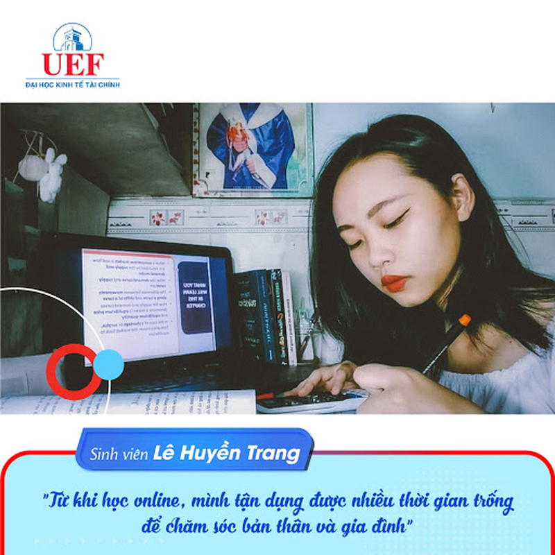 Đối với sinh viên Nhà UEF, đây có lẽ là khoảng thời gian vừa khó khăn vừa đáng nhớ. Bạn Lê Huyền Trang - Sinh viên khoa Quản trị du lịch - Khách sạn bày tỏ: “Học online không phải là sự lựa chọn mà là giải pháp duy nhất để chúng ta vẫn đảm bảo tiến độ học tập trong thời kỳ dịch bệnh phức tạp và nguy hiểm. Mình nghĩ để có thể tiếp thu bài giảng một cách tốt nhất thì chính bản thân phải có sự tự học, nghiên cứu bài học thật tốt, luôn đặt câu hỏi nếu như mình không hiểu và bày tỏ cách hiểu lẫn suy nghĩ của mình cho giảng viên biết được tiến độ học tập của mình. Bên cạnh đó, việc ôn lại và thống kê lại kiến thức luôn cần thiết, chỉ cần dành ra 15 đến 30 phút cho mỗi môn học thì mình tin rằng chúng ta có thể nắm bắt kiến thức được kịp thời. Đặc biệt, chúng ta phải có mục tiêu đối với môn học đó. Đây là cái quan trọng để giúp chúng ta xác định xem mình cần nỗ lực bao nhiêu để đạt được kết quả mình mong muốn”.