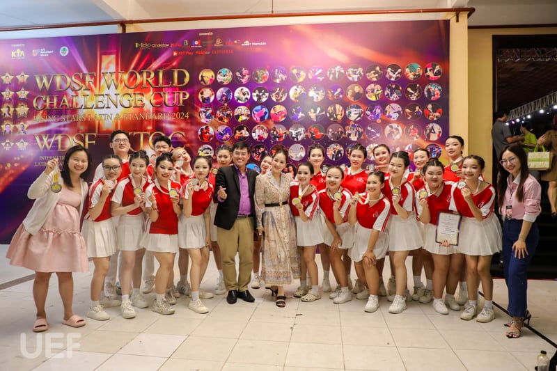 Mở món quà đặc biệt này, bên trong là loạt thành tích ấn tượng của sinh viên Nhà UEF, điển hình như: Huy chương Đồng tại Giải Vô địch Taekwondo Châu Á 2024; Giải Nhất toàn đoàn Hội thi văn nghệ Việt - Trung các trường Đại học phía Nam, lần thứ 2/2024; Giải Nhất vòng Bán kết cuộc thi nói tiếng Hàn toàn quốc - Cúp Đại sứ Hàn Quốc 2024, khu vực phía Nam; Huy chương Bạc tiết mục đồng diễn tập thể tại Giải WDSF World Challenge Cup Rising Stars Latin & Standard; Giải Nhì và Khuyến khích cuộc thi Đại sứ văn hóa du lịch; Giải Ba môn Bóng rổ 3x3 tại Chung kết toàn quốc Giải thể thao Sinh viên Việt Nam (VUG) năm 2024; Giải Ba và Khuyến khích cuộc thi Hùng biện tiếng Trung mở rộng lần thứ 3 - 2024,...