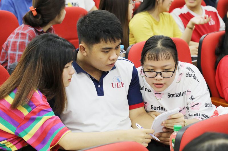 UEF được biết đến là trường đại học đào tạo chương trình song ngữ - quốc tế với hơn 50% thời lượng học tập bằng tiếng Anh. Đặc biệt, với chuẩn đầu ra yêu cầu sinh viên phải có chứng chỉ IELTS 5.5 trở lên, ngoài chương trình đào tạo tiếng Anh chính khóa 7 cấp độ, Nhà trường thường xuyên tổ chức các buổi talkshow, workshop về bí quyết nâng cấp năng lực ngoại ngữ nói chung và "vượt ải" kỳ thi IELTS nói riêng.