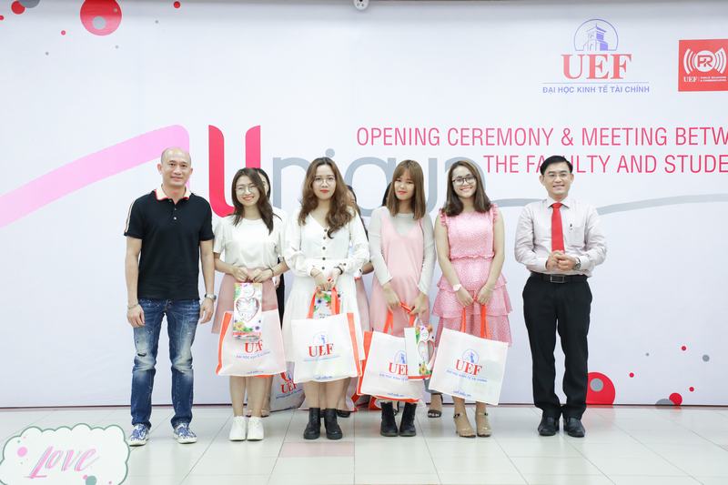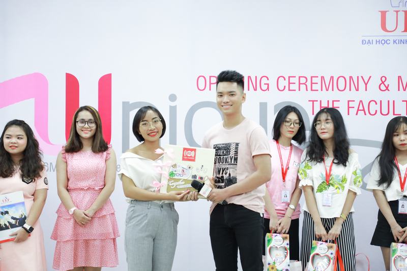 Điểm nhấn của buổi “đại tiệc” chào tân sinh viên này chính là tông màu hồng đặc trưng thể hiện qua background, trang phục và cả những món quà tặng là những đóa sen sắc hồng tươi thắm.