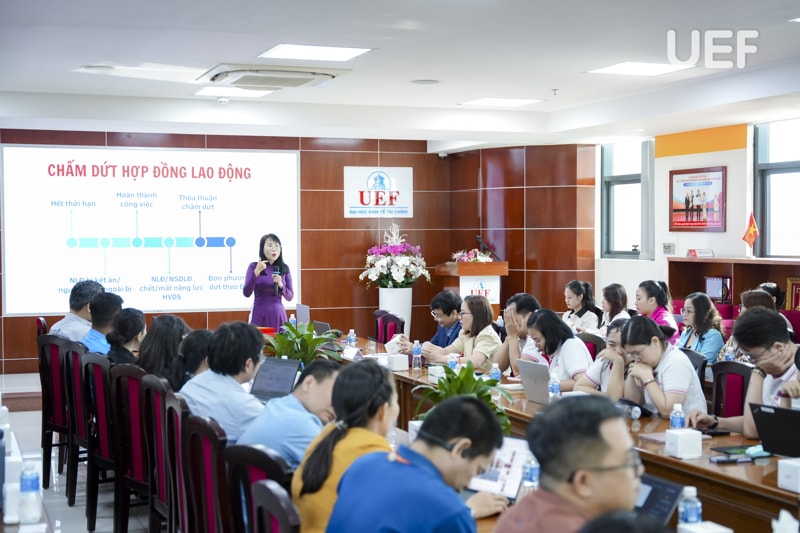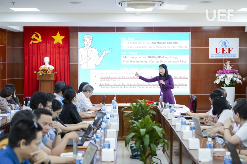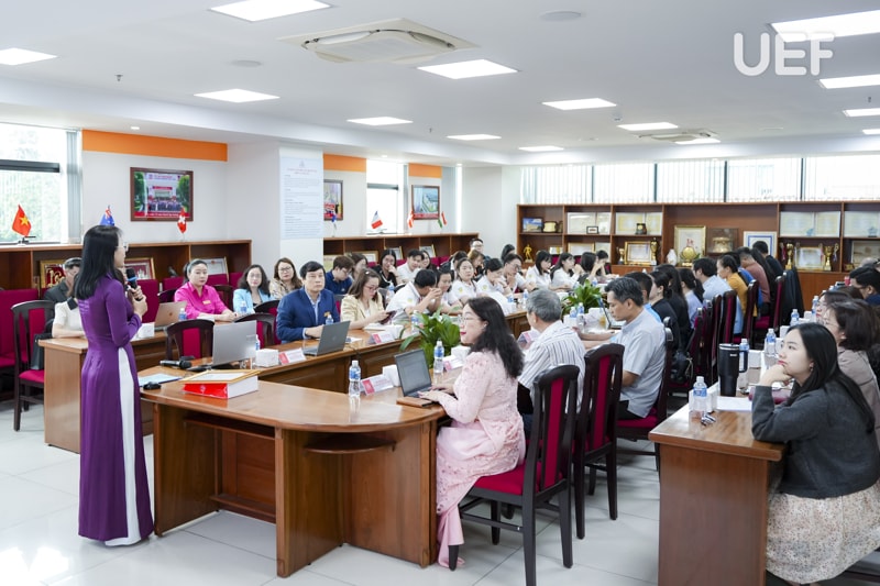 Nhằm hiện thực hóa mục tiêu này, chiều ngày 23/4, UEF đã đăng cai tổ chức chương trình tập huấn "Giáo dục pháp luật cho công đoàn viên Khối thi đua số 12 năm học 2025 - 2026" với sự tham gia của đông đảo các thầy cô đại diện công đoàn cơ sở trong khối.