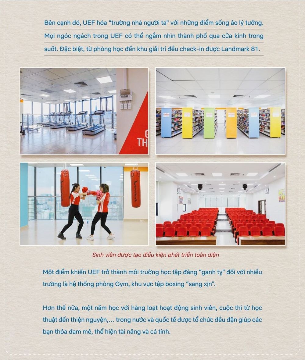 Không những thế, sinh viên UEF được trải nghiệm môi trường giáo dục quốc tế liên tục mỗi học kỳ, học bổng quốc tế cũng được trường "săn" về để các bạn có cơ hội lựa chọn. Visa du học được tư vấn tận tình, tạo nên sự yên tâm cho mỗi bạn cũng như gia đình.