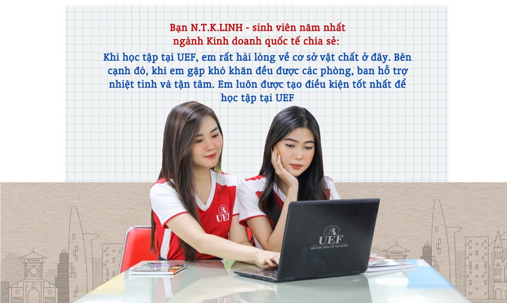 Ngoài liên hệ trực tiếp, các bạn còn có rất nhiều kênh để liên hệ tư vấn, đóng góp ý kiến như hotline, hệ thống eLearning UEF, email,... Mỗi sinh viên cũng được cấp tài khoản cá nhân để cập nhật lịch học, lịch thi, điểm số. Phụ huynh có thể truy cập hệ thống để theo dõi cũng như được gửi thư báo kết quả học tập của sinh viên mỗi kỳ. ![]() ![]()