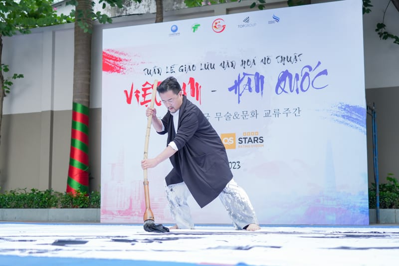 Phần biểu diễn nghệ thuật vẽ thư pháp trên khổ lớn từ nghệ nhân Lee Jinheok