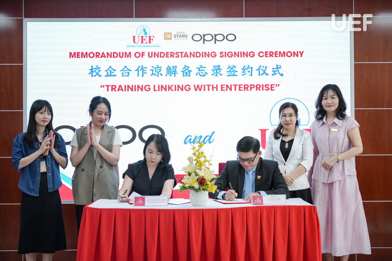 Vào ngày 3/7, UEF và OPPO Việt Nam đã chính thức ký kết biên bản ghi nhớ hợp tác (MOU), đánh dấu bước phát triển mới trong mối quan hệ giữa Nhà trường và doanh nghiệp. Sự kiện mở ra nhiều cơ hội thực tập, việc làm và trải nghiệm thực tế cho sinh viên ngành Ngôn ngữ Trung Quốc, Marketing và nhóm ngành Kinh doanh tại UEF.