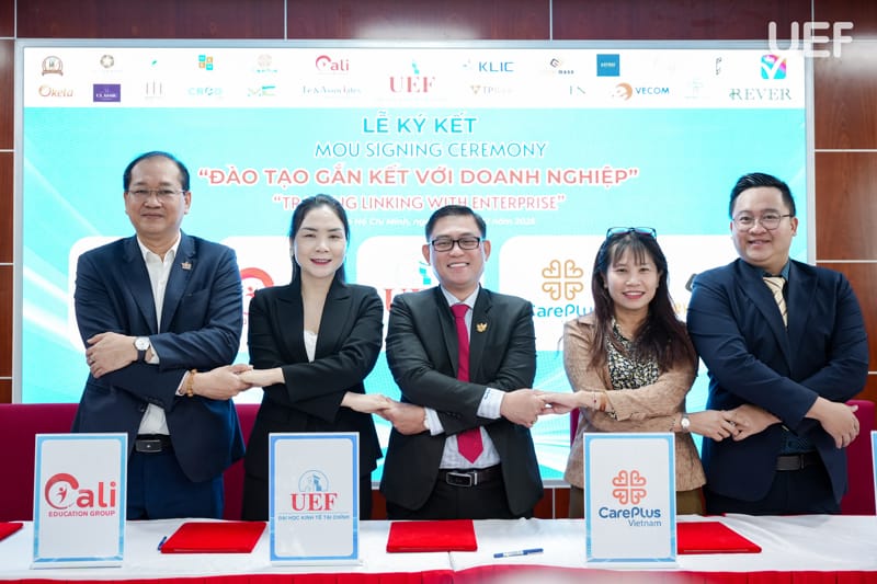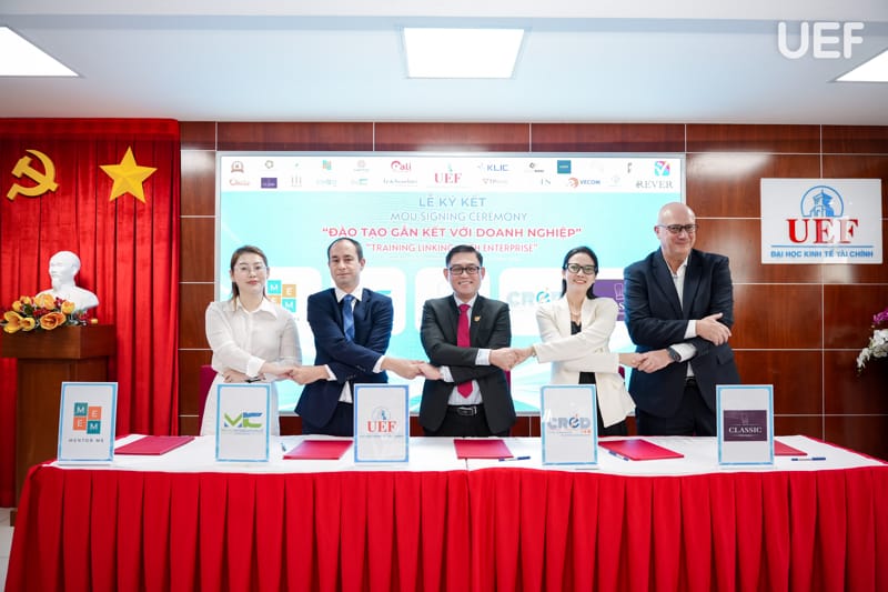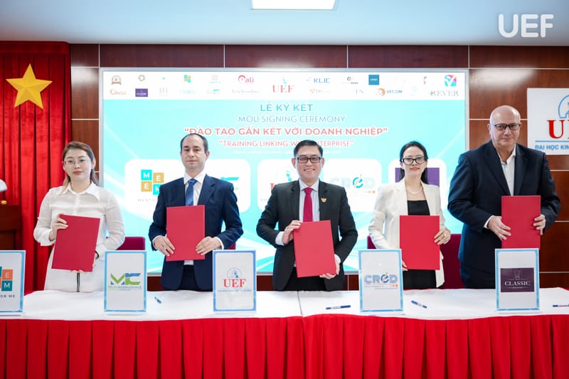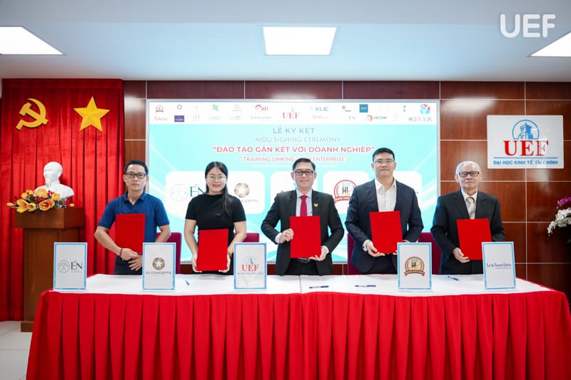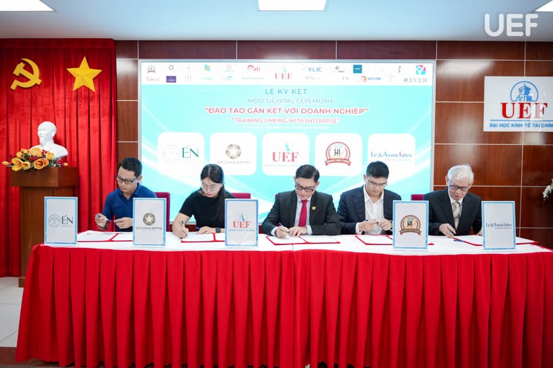 Sáng ngày 9/12, UEF đã tổ chức lễ ký kết hợp tác với 23 doanh nghiệp thuộc lĩnh vực kinh doanh, dịch vụ, mở rộng mạng lưới thực tập, tuyển dụng và nâng cao chất lượng đào tạo theo định hướng ứng dụng.