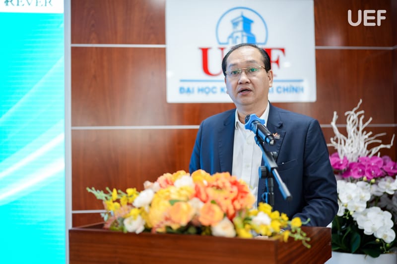 Phát biểu tại chương trình, ông Đỗ Quốc Anh - Phó Chủ tịch Hội đồng trường nhấn mạnh định hướng đào tạo gắn với thực tiễn của UEF, trong đó doanh nghiệp giữ vai trò then chốt trong việc đồng hành xây dựng môi trường học tập ứng dụng, hỗ trợ sinh viên rèn luyện kỹ năng nghề nghiệp và nâng cao năng lực cạnh tranh.