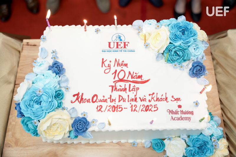 Ngay sau lễ ký kết, Khoa Quản trị du lịch - Khách sạn đã tổ chức chương trình kỷ niệm 10 năm thành lập, đánh dấu hành trình xây dựng môi trường học thuật năng động, sáng tạo và gắn kết với doanh nghiệp. Buổi lễ là dịp để Khoa nhìn lại những dấu ấn phát triển, tri ân doanh nghiệp đồng hành và tiếp tục mở rộng mạng lưới hợp tác chiến lược nhằm nâng cao chất lượng đào tạo trong giai đoạn mới.