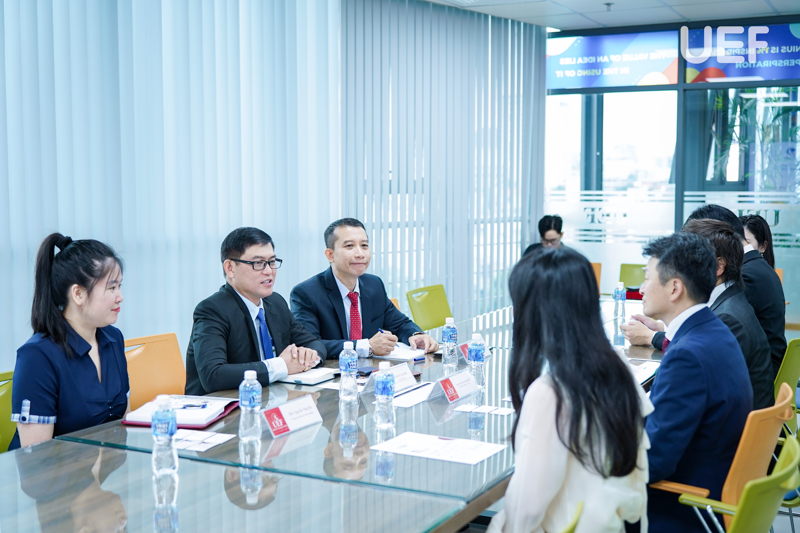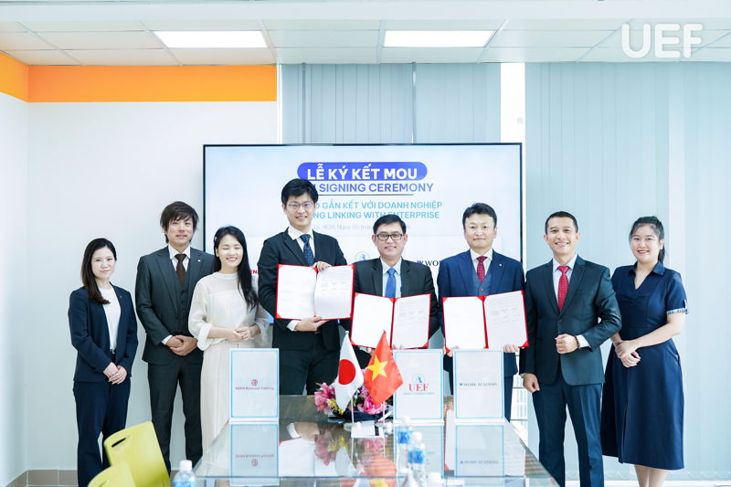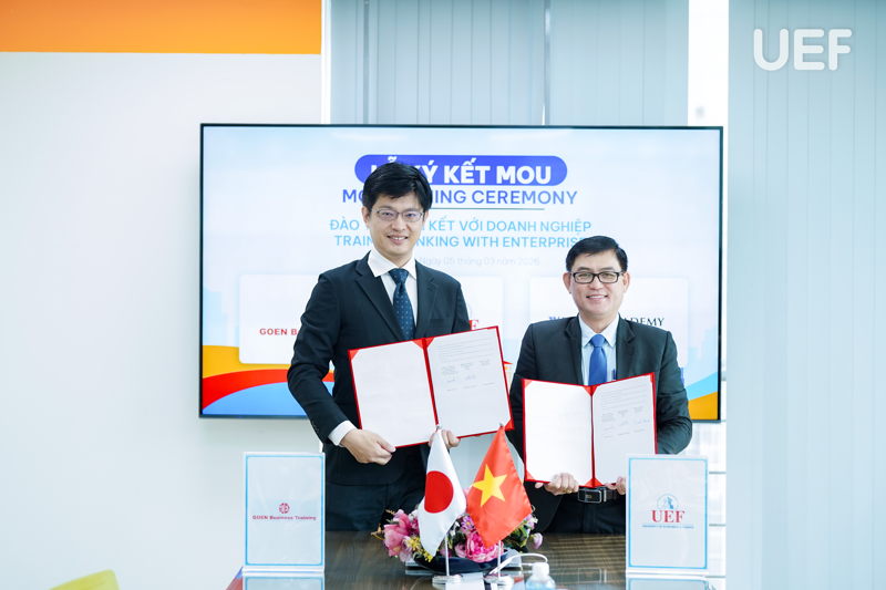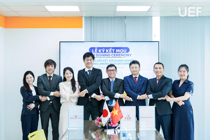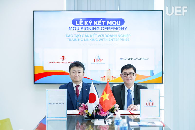 Sáng ngày 5/3, UEF đã có buổi làm việc và ký kết Biên bản ghi nhớ hợp tác (MOU) với Work Academy Co., Ltd và GO EN Company Limited, mở ra thêm nhiều cơ hội thực tập, việc làm tại Nhật Bản cho sinh viên. Sự kiện tiếp tục bám sát định hướng quốc tế hóa và chiến lược tăng cường kết nối doanh nghiệp toàn cầu của Nhà trường.