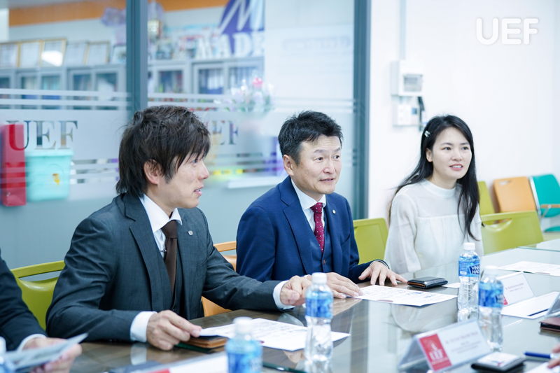 Trong chương trình làm việc, các bên đã giới thiệu tổng quan về mô hình đào tạo, hoạt động kinh doanh và định hướng phát triển nguồn nhân lực. Những trao đổi tập trung vào việc xây dựng lộ trình hợp tác cụ thể nhằm mở rộng thị trường và lĩnh vực thực tập cho sinh viên UEF tại Nhật Bản; tạo điều kiện để sinh viên quốc tế của UEF có cơ hội trải nghiệm môi trường làm việc thực tế; đồng thời thúc đẩy chương trình đưa sinh viên Nhật Bản đến Việt Nam thực tập, học ngắn hạn và giao lưu văn hóa.