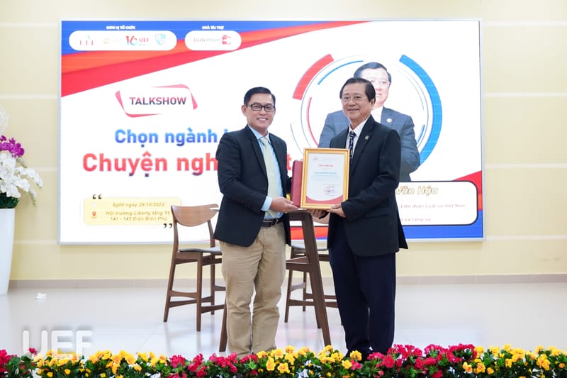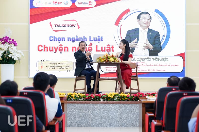 Chương trình Talkshow do Khoa Luật tổ chức với sự đồng hành tài trợ của Công ty Cổ phần Truyền thông Luật Việt Nam, bên cạnh đó là sự hỗ trợ tích cực trong công tác tổ chức của bạn Nguyễn Đỗ Toàn - Chủ nhiệm Câu lạc bộ MMA UEF và bạn Hồ Thượng Quang Huy - sinh viên Khoa Luật. Tin rằng, sinh viên đã có những thông tin bổ ích, giá trị, những bài học ý nghĩa từ chương trình cũng giúp các bạn có thêm góc nhìn sâu sắc về nghề Luật, xác định kỹ năng cần thiết để theo đuổi mục tiêu trở thành Luật sư.