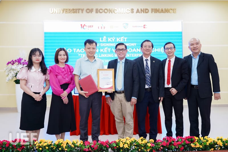 Về phía UEF có TS. Nhan Cẩm Trí - Phó Hiệu trưởng Nhà trường, ThS. Huỳnh Quốc Phong - Giám đốc Trung tâm Hợp tác doanh nghiệp, ThS. Vũ Anh Sao - Phó Trưởng khoa Luật, ThS. Nguyễn Thị Kim Loan - Phó Giám đốc Trung tâm Hợp tác doanh nghiệp.