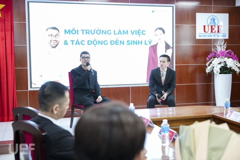 Sau nghi thức ký kết MOU, talkshow với chủ đề môi trường làm việc tạo tác động đến sinh lý đã được ThS. Bác sĩ Lê Vũ Tân chia sẻ dưới góc nhìn chuyên môn. Buổi trò chuyện còn được gợi mở thêm câu chuyện thực tiễn từ đạo diễn Phạm Vĩnh Khương.