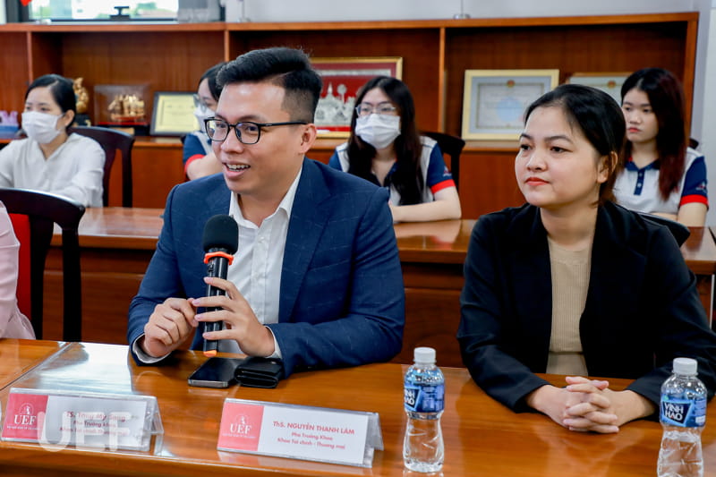 Về phía UEF có ông Đỗ Quốc Anh - Phó Chủ tịch Hội đồng trường, PGS.TS. Ngô Cao Cường - Phó Hiệu trưởng thường trực Nhà trường, ThS. Huỳnh Quốc Phong - Giám đốc Trung tâm Hợp tác doanh nghiệp, TS. Hà Thị Thủy - Trưởng khoa Tài chính - Thương mại, TS. Tăng Mỹ Sang - Phó Trưởng khoa Tài chính - Thương mại, ThS. Nguyễn Thanh Lâm - Phó Trưởng khoa Tài chính - Thương mại, ThS. Nguyễn Thị Kim Loan - Phó Giám đốc Trung tâm Hợp tác doanh nghiệp.
