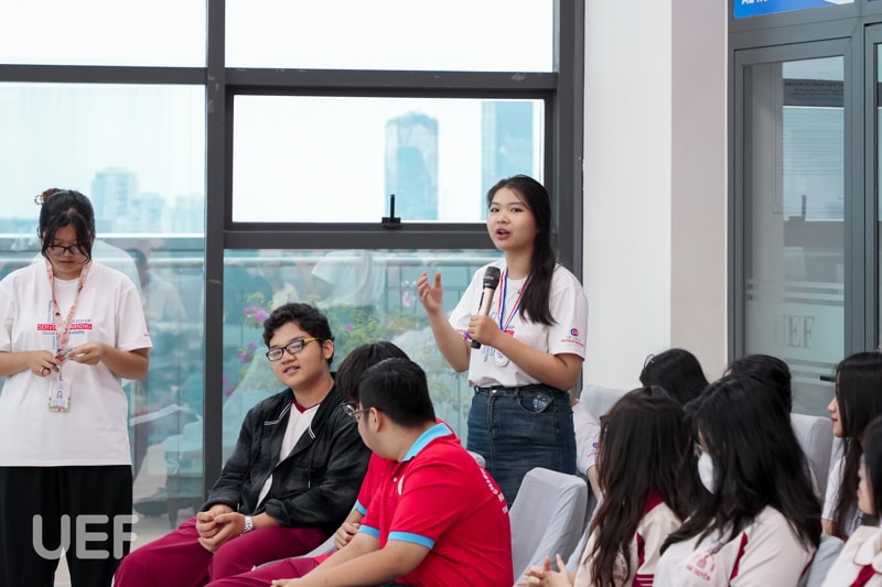 Học sinh THPT Hàn Thuyên tranh thủ làm rõ những thắc mắc về môi trường học tập tại UEF từ trải nghiệm thực tế của sinh viên