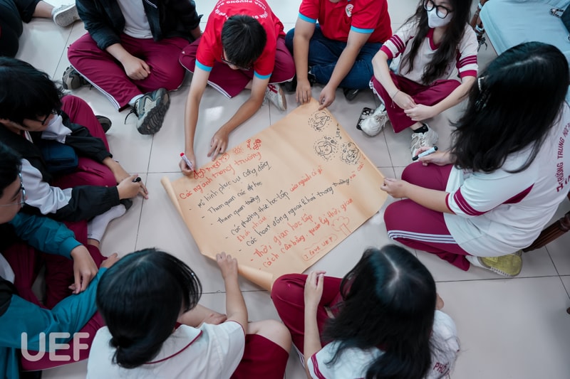 Hoạt động nhóm đầu giờ xóa bỏ khoảng cách giữa UEFers và các bạn học sinh