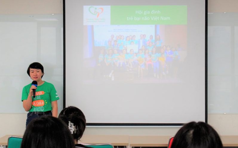 Chị Mai Diệp - Đại diện Hội gia đình trẻ bại não Việt Nam giới thiệu về tổ chức