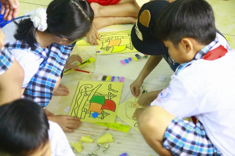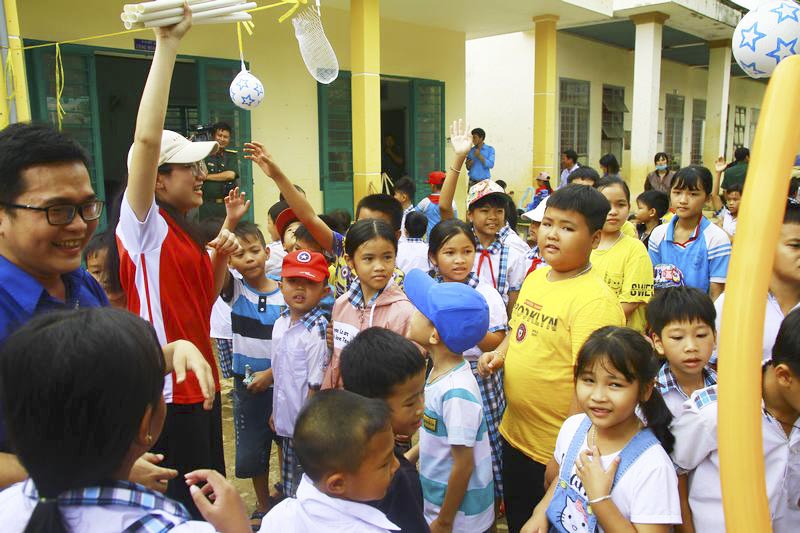 Các bé thiếu nhi tham gia hoạt động cùng anh chị Đoàn trường UEF