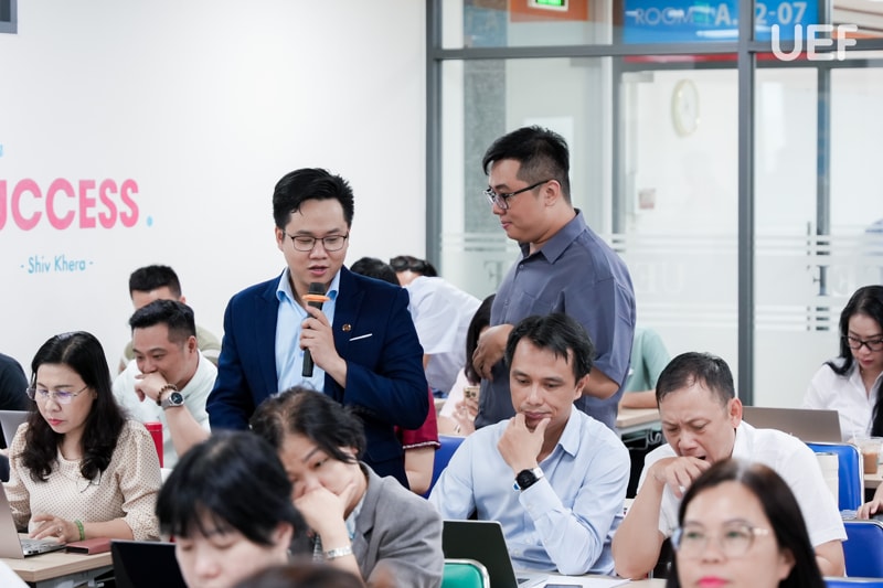 Từ góc độ quản lý đào tạo, ThS. Lê Dũng chia sẻ thêm rằng từ năm 2026, UEF sẽ tiến hành rà soát chương trình giữa chu kỳ, đây là một nhiệm vụ mang tính chiến lược. Vì vậy, việc trang bị cho giảng viên kỹ năng thiết kế chuẩn đầu ra, xây dựng đề cương và đánh giá theo đúng yêu cầu chuẩn mực chính là bước chuẩn bị quan trọng để đảm bảo tính đồng bộ, nhất quán và bền vững của hệ thống đào tạo trong bối cảnh Nhà trường liên tục phát triển.