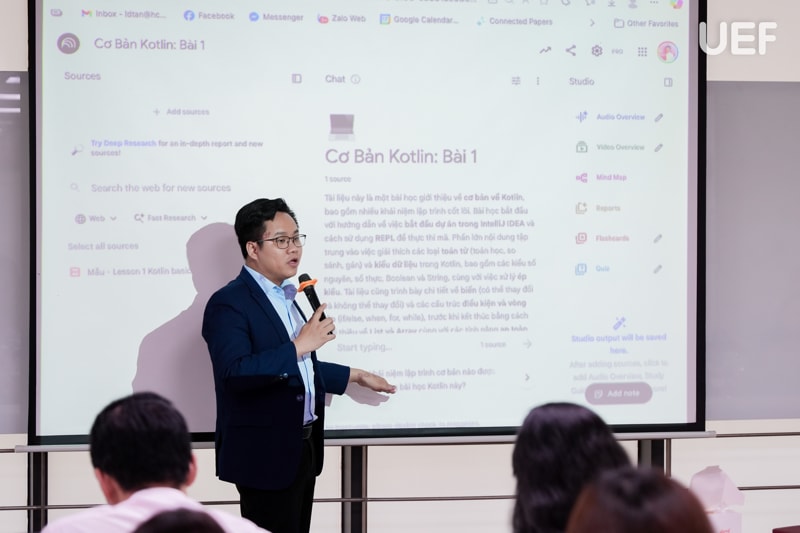 Đại diện Ban Giám hiệu, TS. Hồ Viễn Phương nhấn mạnh ý nghĩa của hoạt động khi UEF đang bước vào giai đoạn tăng tốc về chất lượng đào tạo, đòi hỏi đội ngũ phải liên tục cập nhật phương pháp và công cụ làm việc mới.