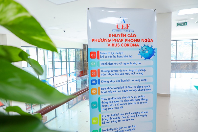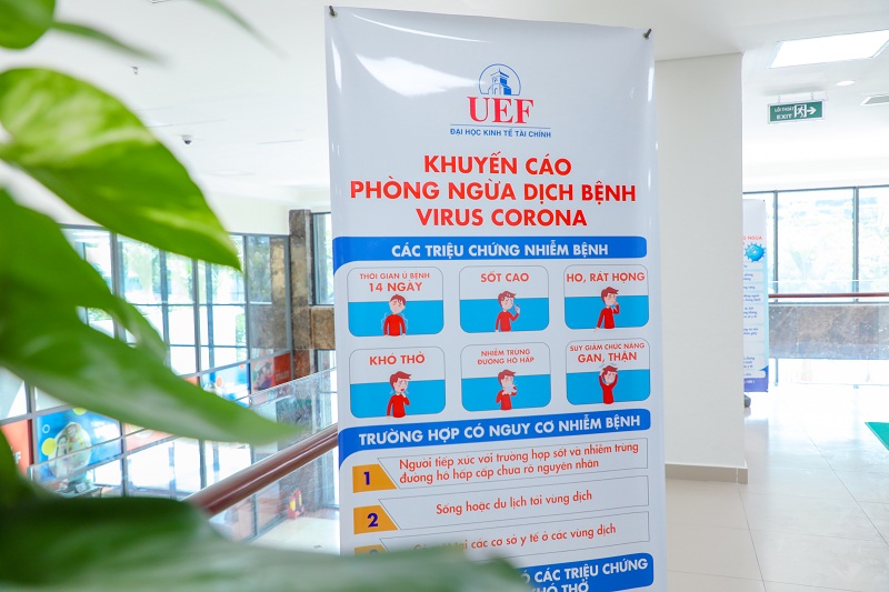 Từ ngày 17/2/2020, sinh viên Trường Đại học Kinh tế - Tài chính thành phố Hồ Chí Minh (UEF) dự kiến sẽ trở lại trường học tập sau thời gian tạm nghỉ để phòng ngừa dịch bệnh do chủng mới virus Corona (tên chính thức là COVID-19) gây ra. Trước đó, Nhà trường đã thực hiện nhiều biện pháp để đảm bảo sức khỏe cho cán bộ - giảng viên - nhân viên và các bạn sinh viên cũng như góp phần ngăn chặn sự xâm nhập của dịch bệnh.