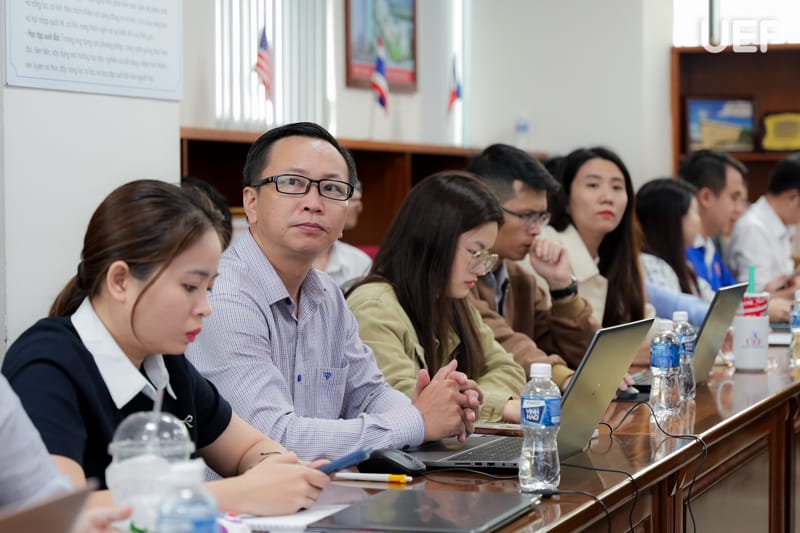 Tham dự buổi tập huấn có TS. Hồ Viễn Phương - Phó Hiệu trưởng; TS. Lê Vũ Hương Giang - Phó Chánh Văn phòng trường; PGS.TS. Nguyễn Thành Luân - Phó Trưởng phòng Khoa học công nghệ và Dự án quốc tế; TS. Phan Thị Nhã Trúc - Phó Trưởng phòng Khoa học công nghệ và Dự án quốc tế.
