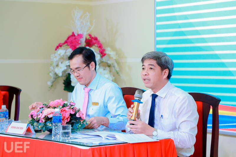 Sau phần khai mạc, CB-GV-NV UEF đã nghe TS. Nguyễn Thanh Giang báo cáo tổng kết năm học 2021 - 2022 và phương hướng năm học 2022 - 2023. Trong báo cáo, TS. Nguyễn Thanh Giang đã nhấn mạnh 2 điều quan trọng mà UEF đạt được trong năm qua là sự ổn định và sự phát triển. Mặc dù chịu những ảnh hưởng nhất định của đại dịch Covid-19 nhưng bằng sự đồng lòng, gắn kết, Nhà UEF đã vượt qua những khó khăn, góp phần đưa thương hiệu của Nhà trường đến gần hơn với xã hội.