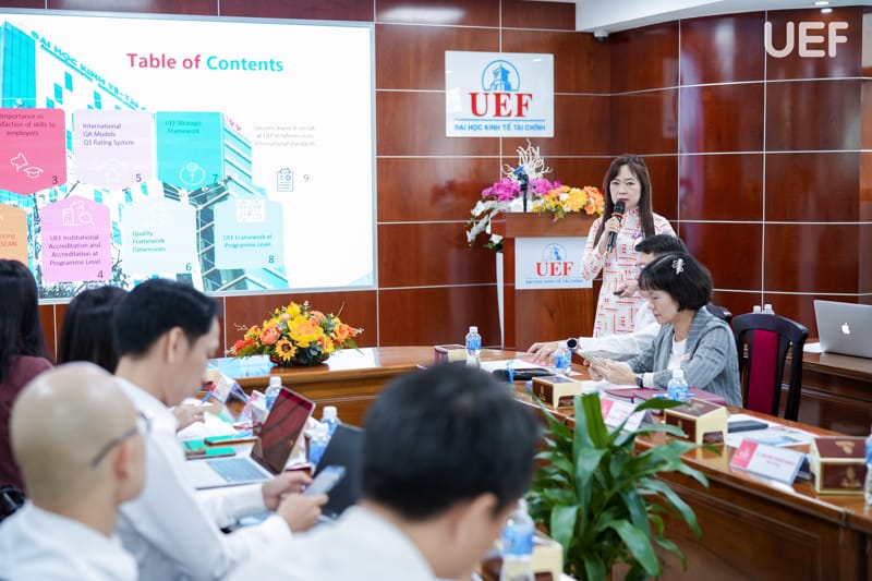 Tại hội nghị, hoạt động bảo đảm chất lượng của UEF trong 5 năm qua được tổng kết theo các công tác: bảo đảm chất lượng bên trong, khảo sát ý kiến các bên liên quan, kiểm định chất lượng giáo dục, đánh giá chất lượng theo QS Stars, cải tiến chất lượng và lan tỏa văn hóa chất lượng, hợp tác và hội nhập quốc tế.