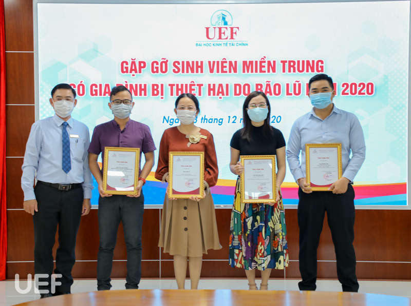 Trường Đại học Kinh tế - Tài chính TP.HCM (UEF) đã hỗ trợ 50 sinh viên đang theo học thuộc các địa phương bị ảnh hưởng bởi các đợt bão, lũ vừa qua. Mỗi sinh viên được nhận tiền mặt với mức 5.000.000đ/ trường hợp. Hoạt động hỗ trợ trên là sự chung tay đóng góp của Nhà trường, quý thầy cô, doanh nghiệp đối tác và các bạn sinh viên.