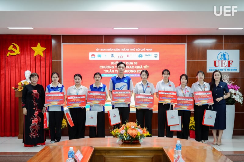 Những phần quà Tết đã thể hiện sự quan tâm, sẻ chia và tinh thần đồng hành từ Nhà trường cùng các đơn vị trong Khối thi đua dành cho sinh viên trong thời điểm cuối năm. Chương trình trao quà Tết đến các bạn sinh viên từ các đơn vị thành viên gồm UEF, Học viện Cán bộ TP.HCM, Trường Đại học Sài Gòn, Trường Đại học Văn Hiến, Trường Đại học Quốc tế Hồng Bàng, Trường Đại học Hùng Vương, Trường Đại học Quốc tế Sài Gòn và Trường Đại học Công nghệ thông tin Gia Định, qua đó tiếp thêm động lực để các bạn an tâm học tập và đón Tết sum vầy bên gia đình.