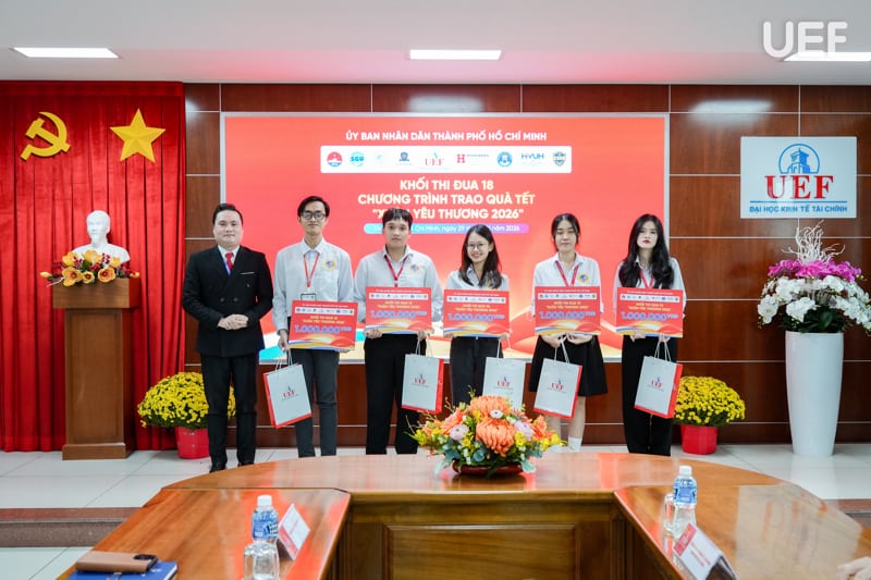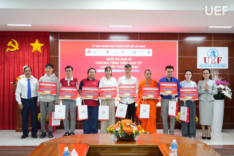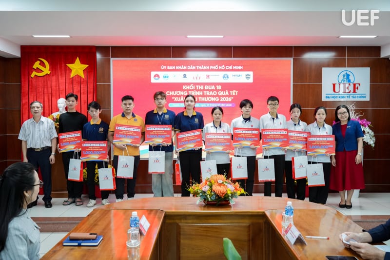 Nhằm chăm lo đời sống tinh thần và hỗ trợ sinh viên có hoàn cảnh khó khăn về quê đón Tết Bính Ngọ 2026, sáng ngày 29/1, UEF đã tổ chức chương trình trao quà Tết “Xuân yêu thương 2026” của Khối thi đua 18. Chương trình góp phần lan tỏa tinh thần sẻ chia, tạo động lực để sinh viên vững tâm học tập và đón mùa xuân sum vầy cùng gia đình.