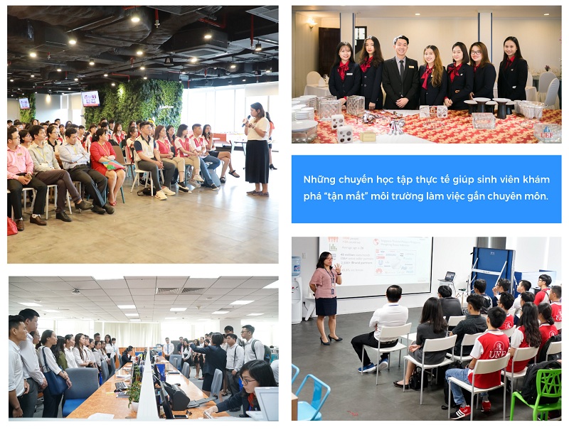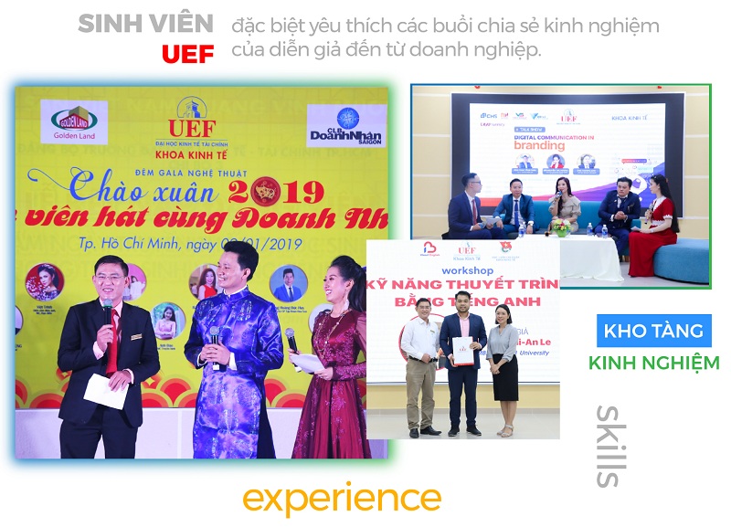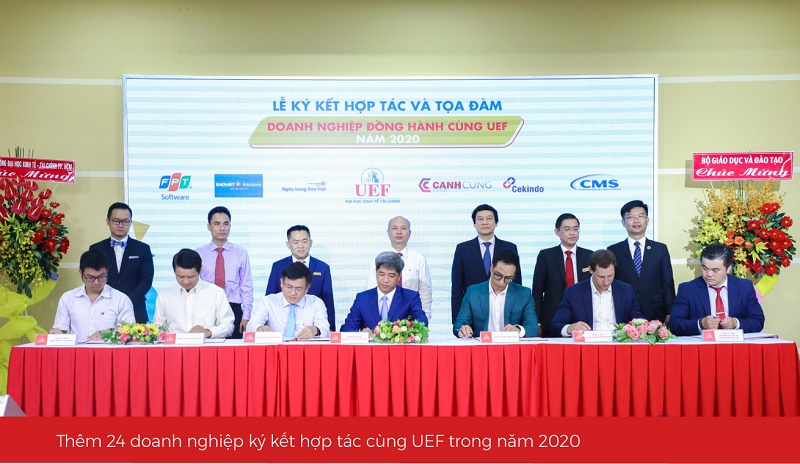 Nhà trường có mối quan hệ gắn kết bền chặt với doanh nghiệp mang lại cho sinh viên cơ hội học tập, tham quan, việc làm. Sinh viên UEF đã thụ hưởng nhiều thành quả gắn kết này, các chuyến tham quan doanh nghiệp như Lazada, Shopee, Glass Egg Digital Media, Vinacapital, Cát Tiên Sa, Sacombank, AEON Mall,... khởi nghiệp với sự tài trợ của doanh nghiệp như Business Ideas,... bổ sung nhiều hoạt động thiết thực khác “ngoài sách vở”.