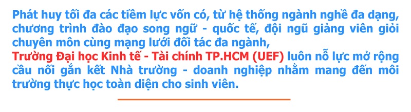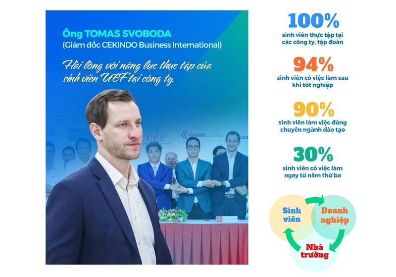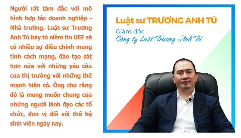 Có thể nói vai trò của doanh nghiệp tại UEF còn được biết đến với hoạt động “Hành trình động từ giảng đường đến khởi nghiệp” tổ chức thường niên với sự tham gia của nhiều doanh nhân giàu kinh nghiệm thương trường bằng các buổi phỏng vấn, học kỹ năng, thái độ trước khi đến doanh nghiệp,... Chương trình mở ra lợi thế cạnh tranh, giúp nguồn nhân lực trẻ tiếp cận nhà tuyển dụng nhanh chóng, dễ dàng ứng tuyển vào các vị trí tiềm năng trên thị trường lao động.