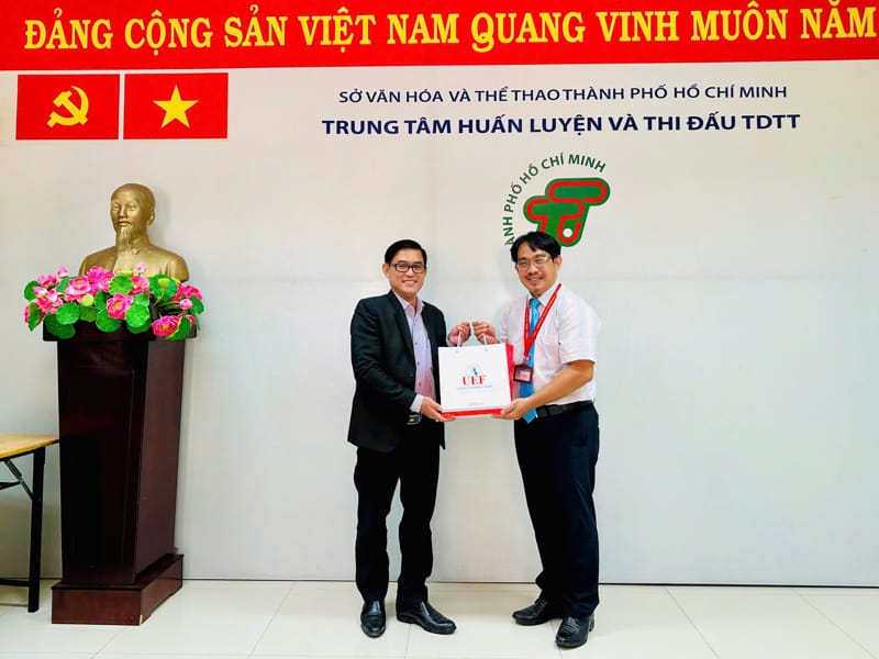 Sáng ngày 17/4, UEF đã có chuyến thăm và làm việc cùng Trung tâm Huấn luyện và Thi đấu Thể dục Thể thao TP.HCM (TTHL-TD TDTT TP.HCM) để trao đổi kế hoạch hợp tác năm 2025. Nhiều nội dung được thảo luận nhằm nâng cao chất lượng hợp tác giữa hai đơn vị trong lĩnh vực thể thao, giáo dục và nghiên cứu ứng dụng.