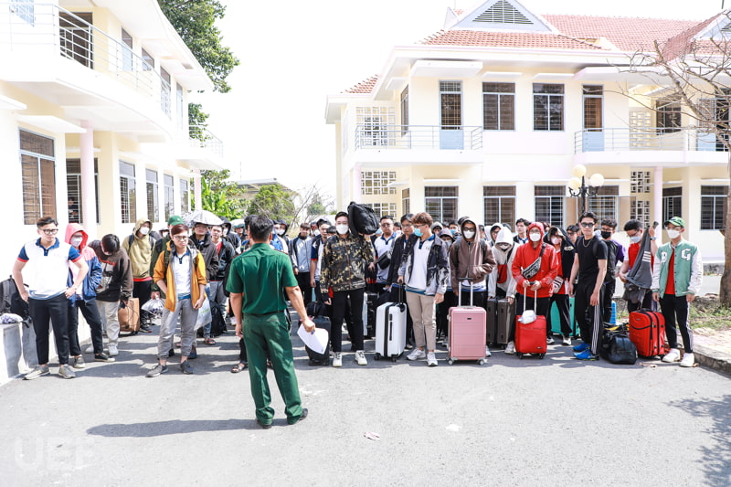 Sau khi di chuyển đến địa điểm học, UEFers đã được đơn vị giảng dạy sắp xếp đội hình, điểm danh theo đại đội. Sinh viên chia đại đội và khu vực sinh hoạt, ngủ nghỉ.