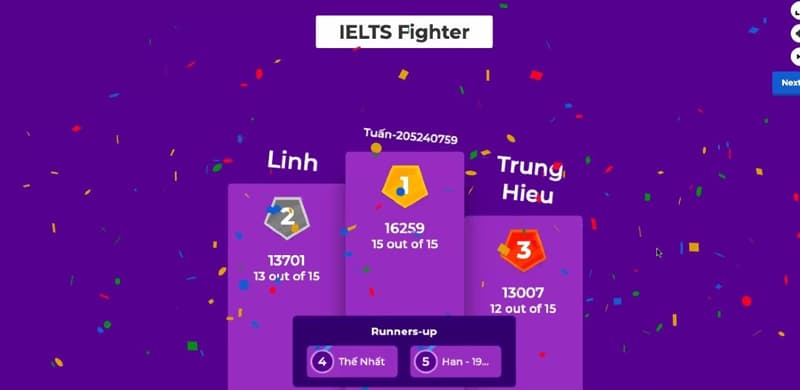 Khởi động chương trình, Ms. Mia Nguyễn đã mở ra sân chơi trên Kahoot tạo tâm lý thoải mái cho sinh viên. Câu hỏi xoay quanh vấn đề về các bài thi IELTS và thông tin liên quan đến IELTS Fighter. Sinh viên UEF về Nhất sẽ nhận được gói hỗ trợ 2.000.000VNĐ cho 1 khóa học bất kỳ tại IELTS Fighter, 2 vị trí tiếp theo nhận hỗ trợ 1.000.000VNĐ.